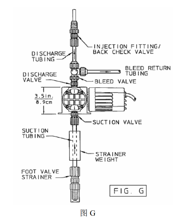 8. 泵头和注射口的箭头表示药剂的流向,若安装正确,这些箭头的方向应该向上的。